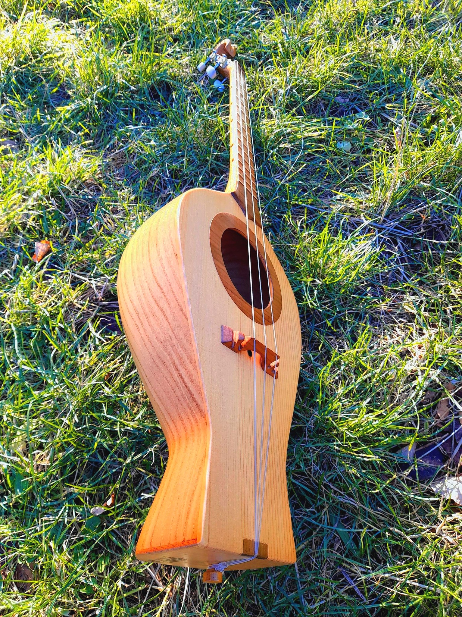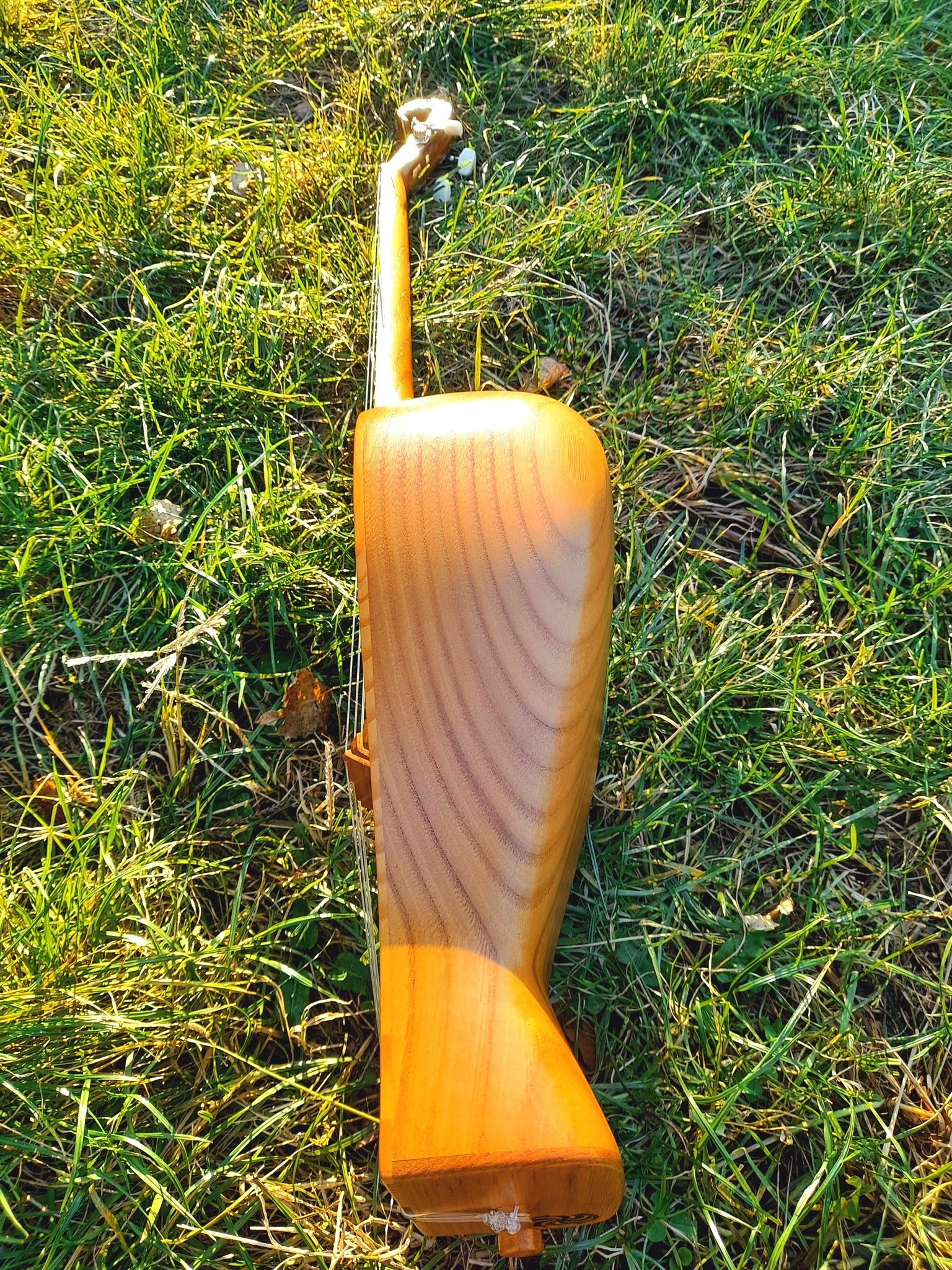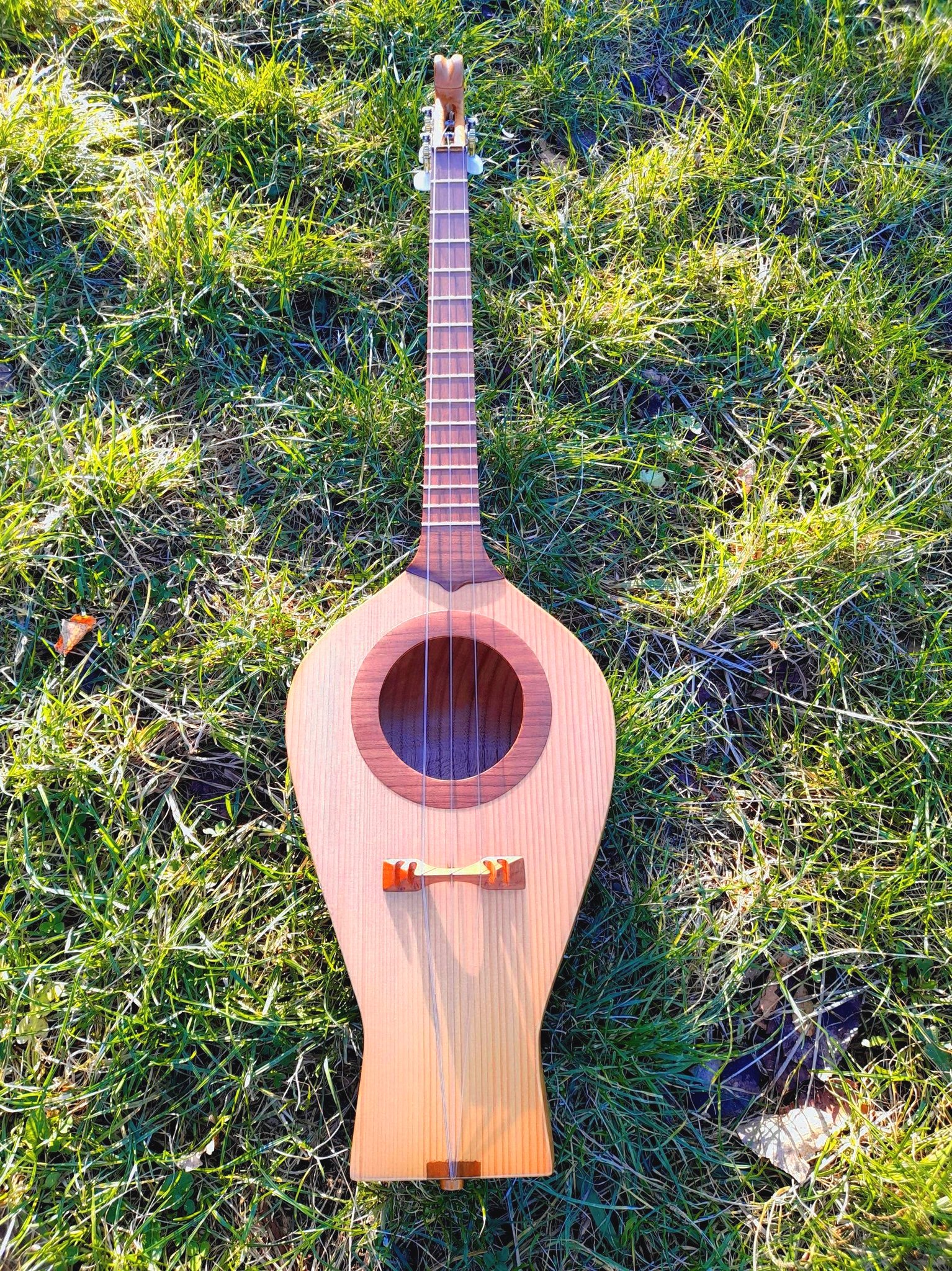 body crafted from the whole core of chestnut wood and presents very careful work. The body shares the similar shape Chonguri have. Instrument produces a sweet and